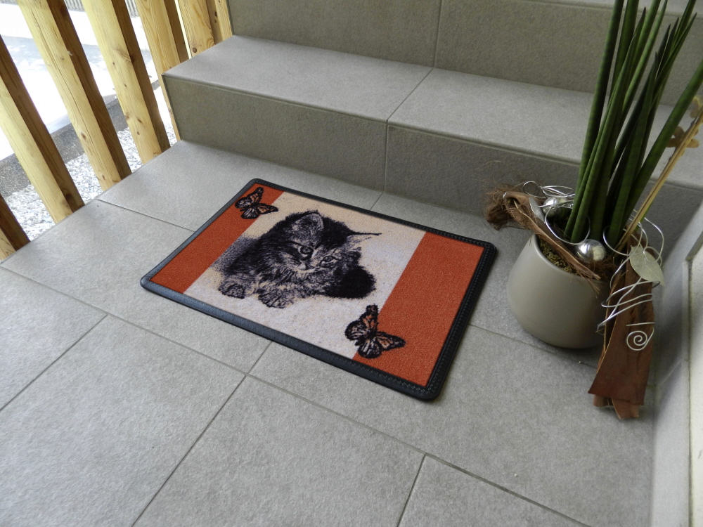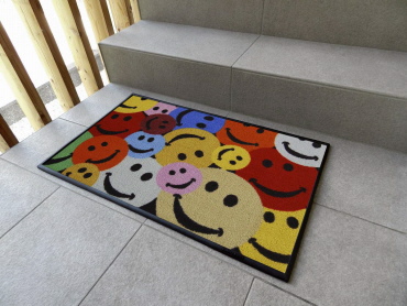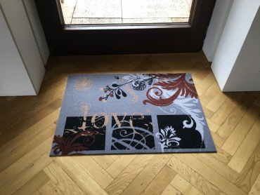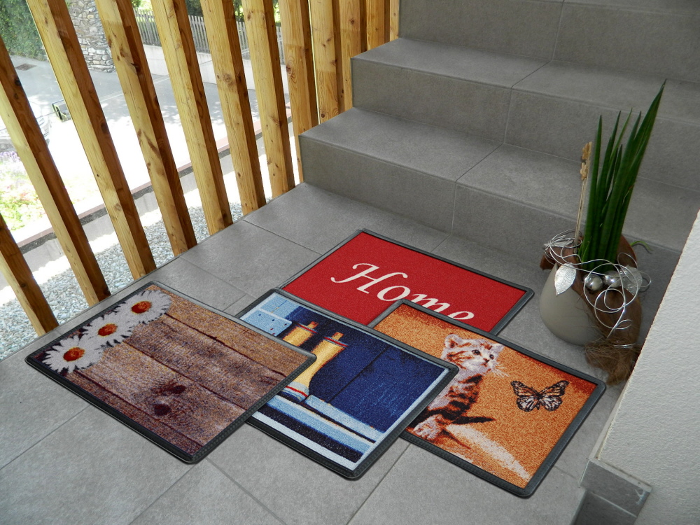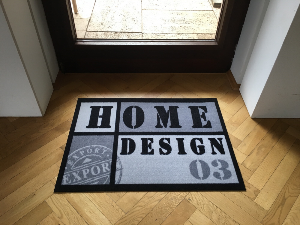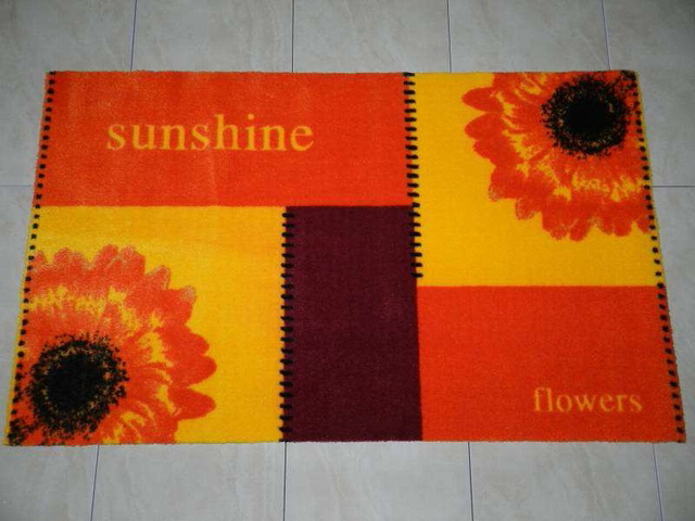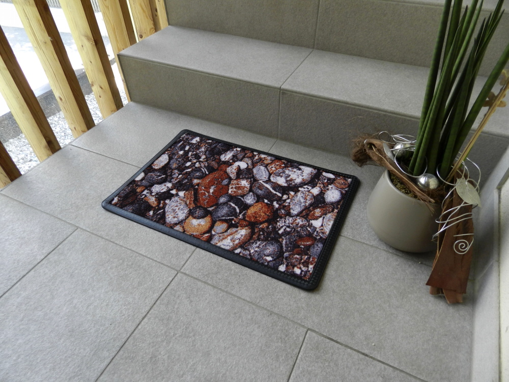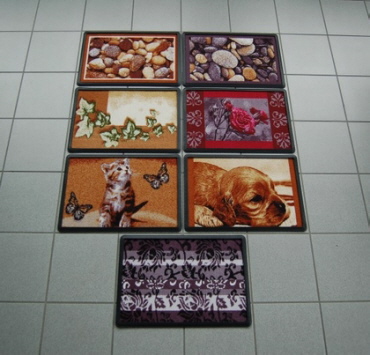 100% Polyamid (Loop oder Cut/Pile) mit hochwertigen Chromojet - Digitaldruck auch ohne Rahmen (Schnittfestes Finish - ohne Kettelung)