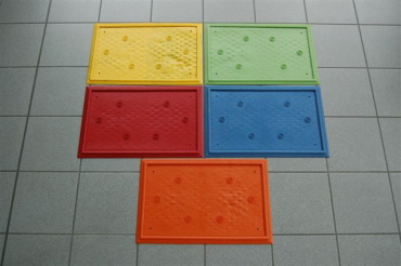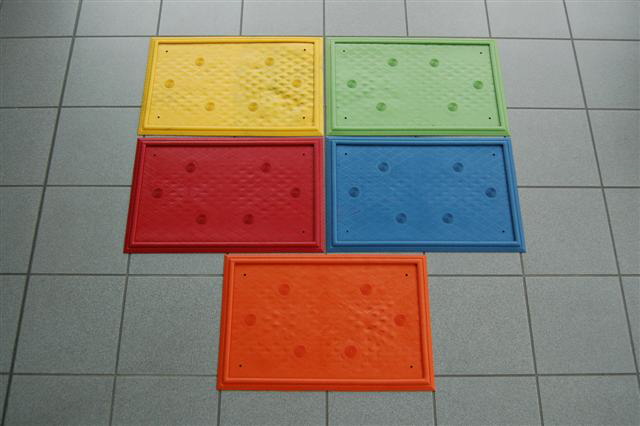 schwarz, grau, braun, blau, rot, orange, gelb und apfelgrün
